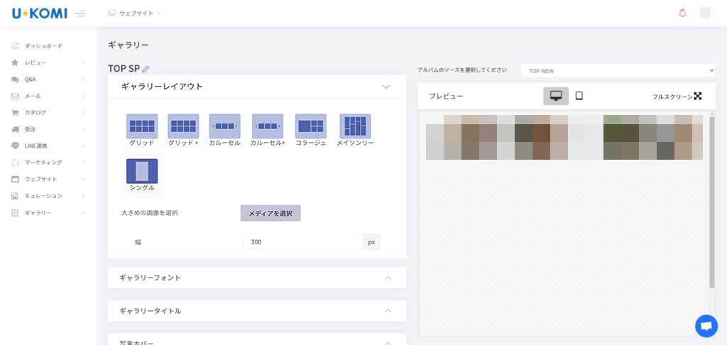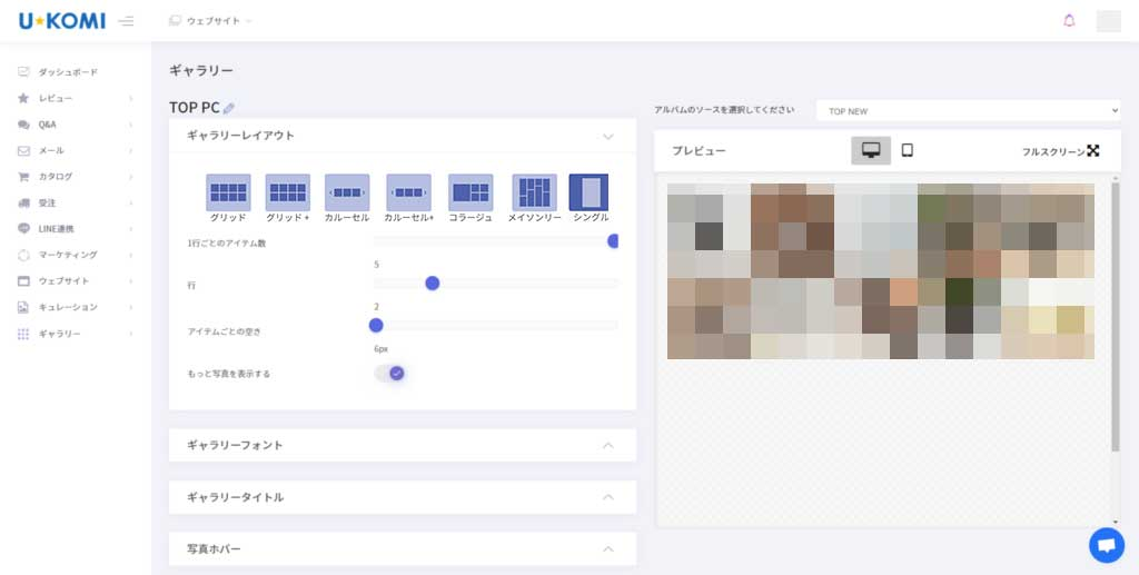 ギャラリーレイアウトは複数種類のレイアウトが用意されています。サイトにあわせて色々なレイアウトを試してみましょう。