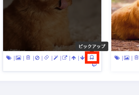 表示したい写真の下画像のようなピックアップマークをご確認ください。