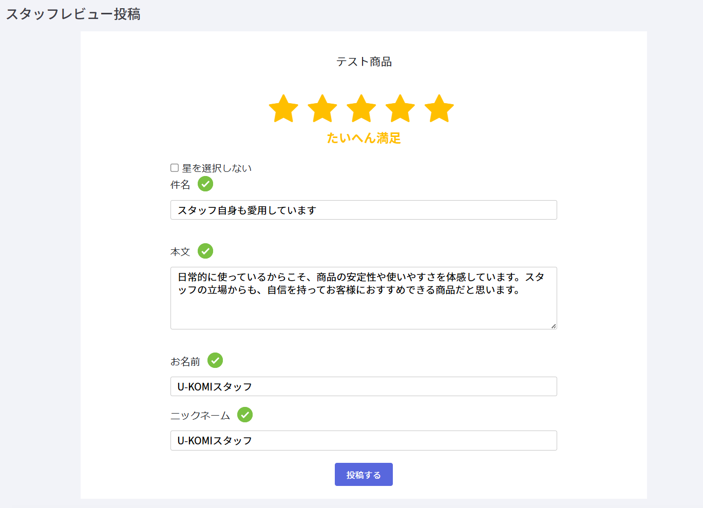 2)スタッフレビュー内容を入力し投稿をする