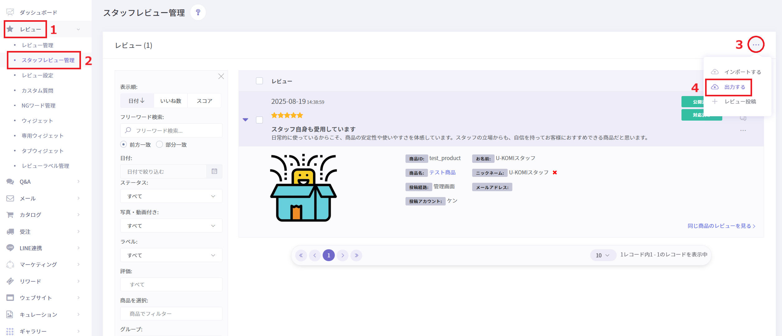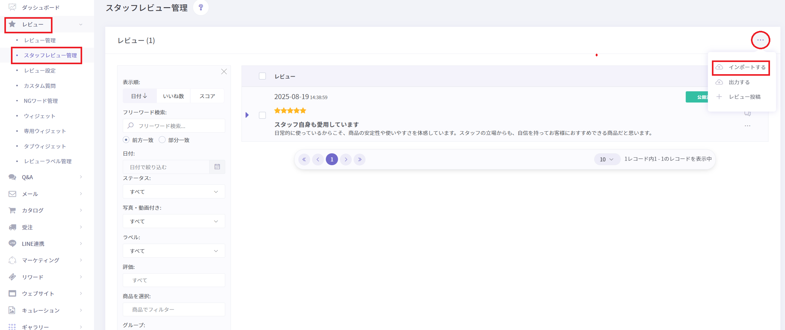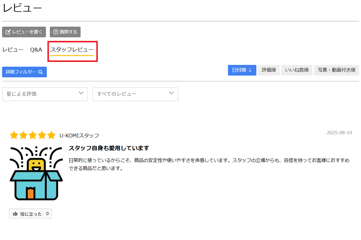 このガイドではスタッフレビュー詳細について解説します。