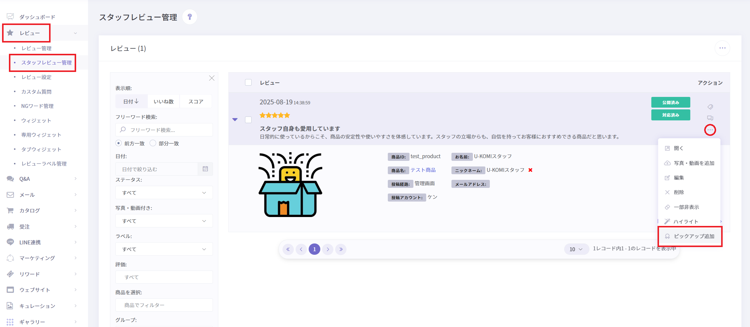 ・ピックアップ追加(サイト上のレビュー一覧のトップにピン留めできます。詳細は下部)