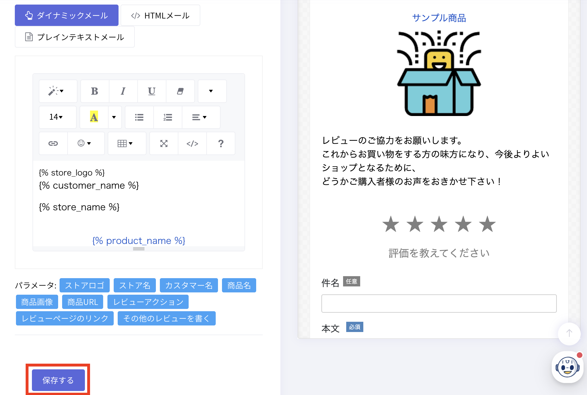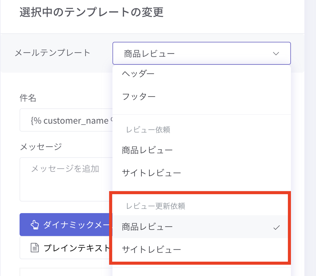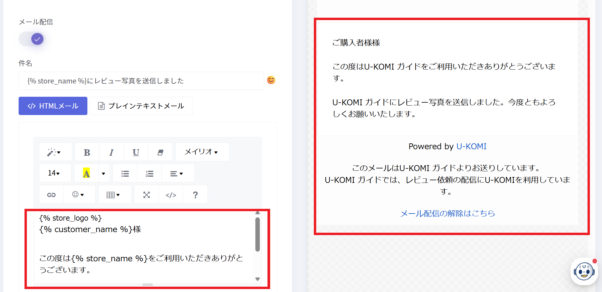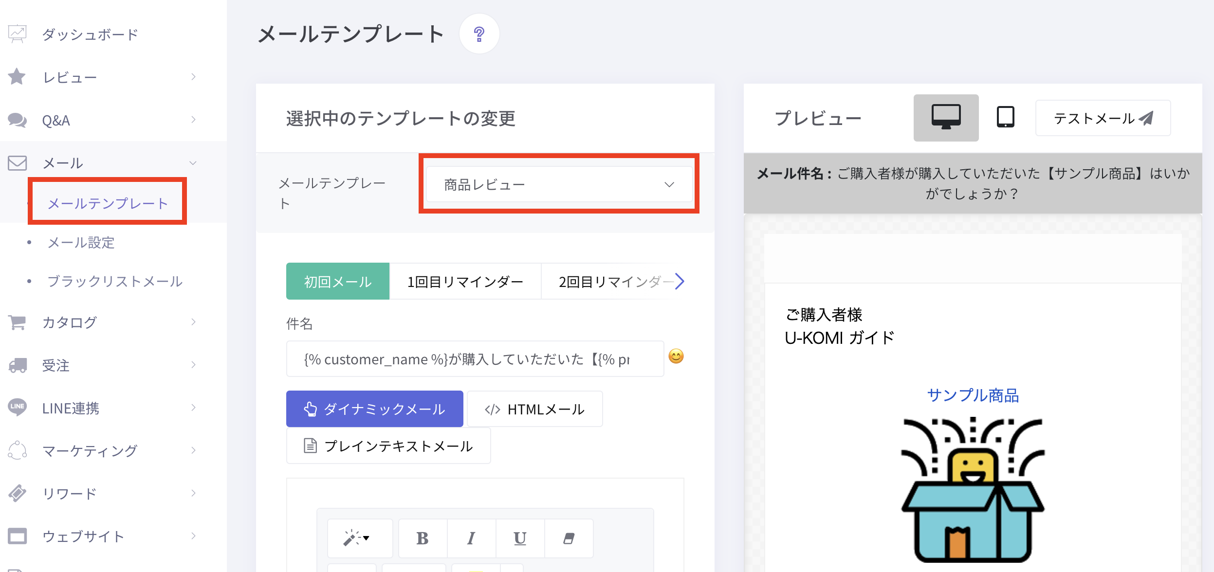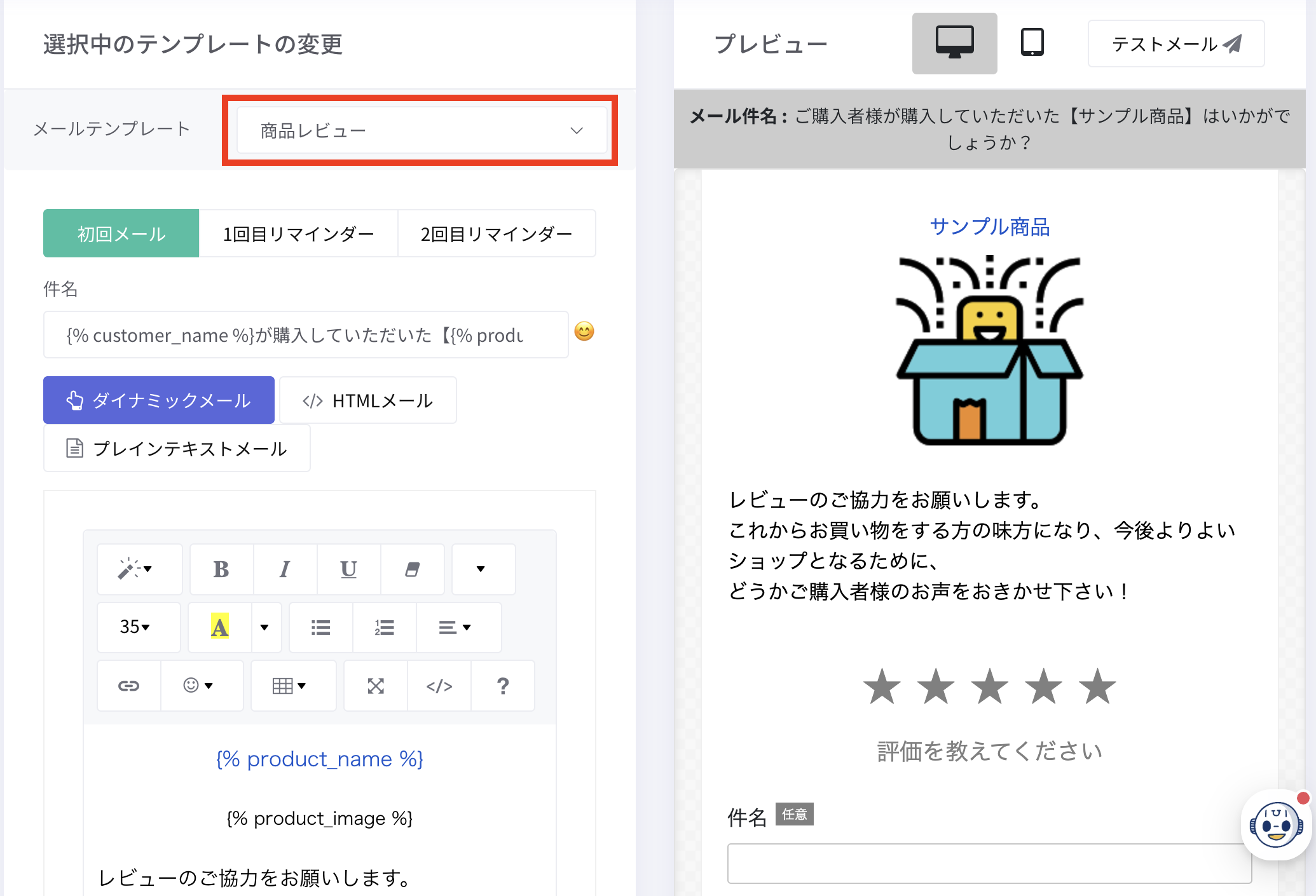 基本的な設定方法はレビュー依頼メールと同様となります。