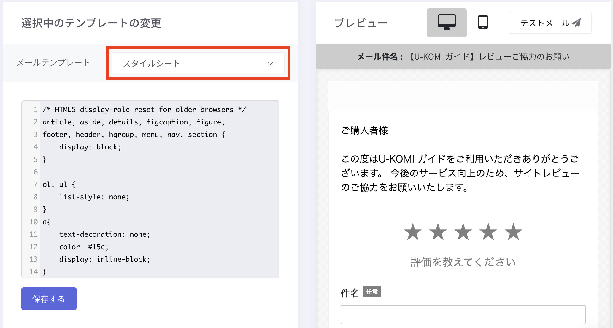 ・レビュー依頼メールを受信するお客様のメーラーによって、どのテンプレートで配信するか自動で振り分けられるため、メールテンプレートの数×3つの仕様すべて、設定が必要となります。設定漏れにご注意ください。