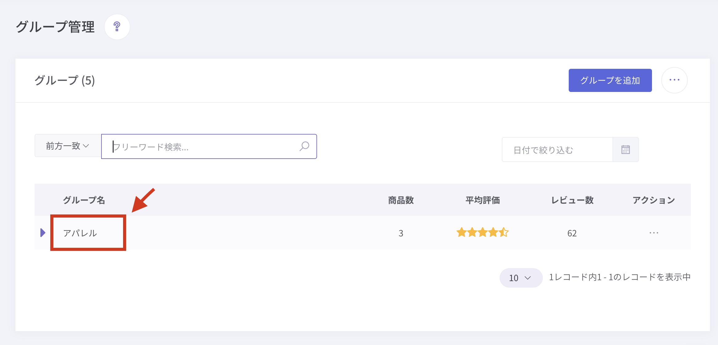 PRODUCT_GROUP 部分には「 カタログ > 商品管理 」より確認できるグループ名 を入力してください。
