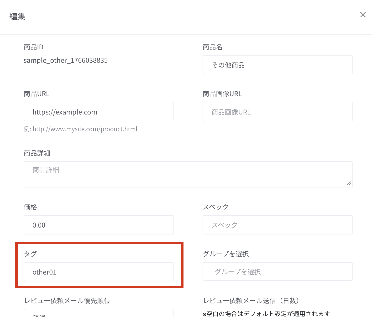 PRODUCT_TAG 部分には、商品タグ を入力してください。