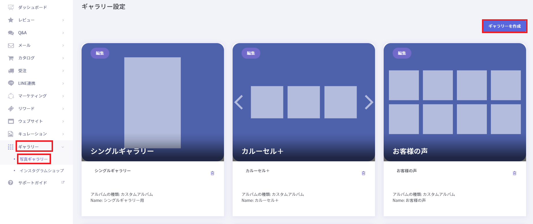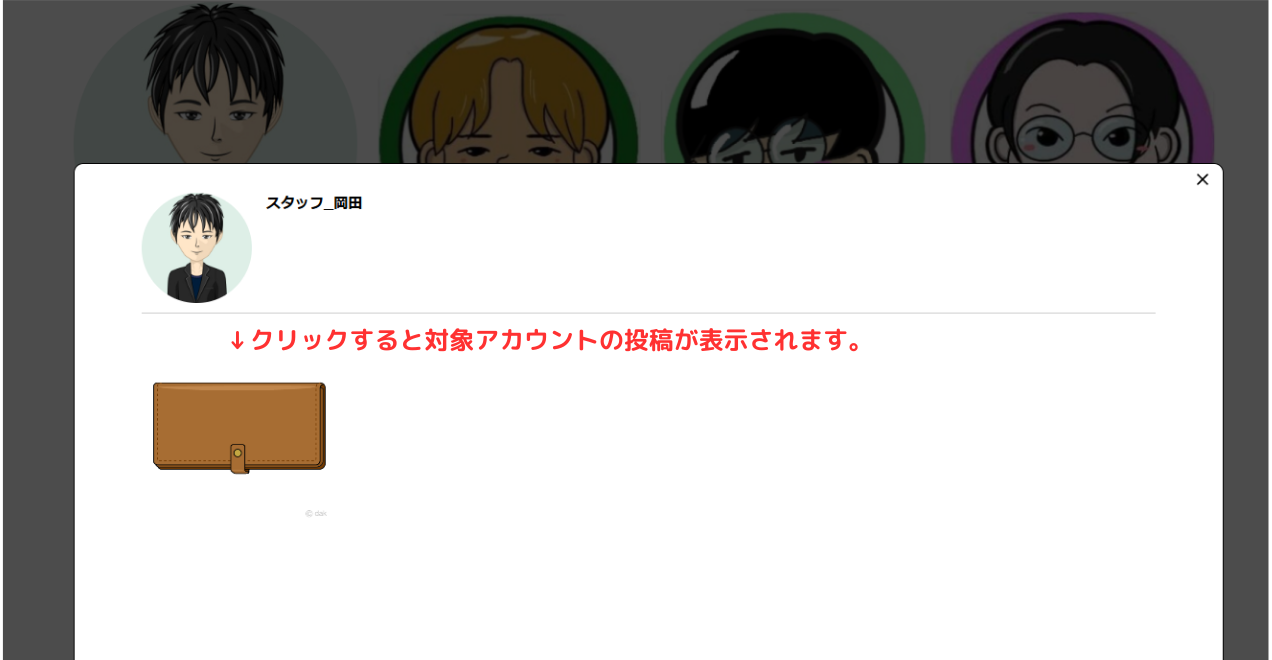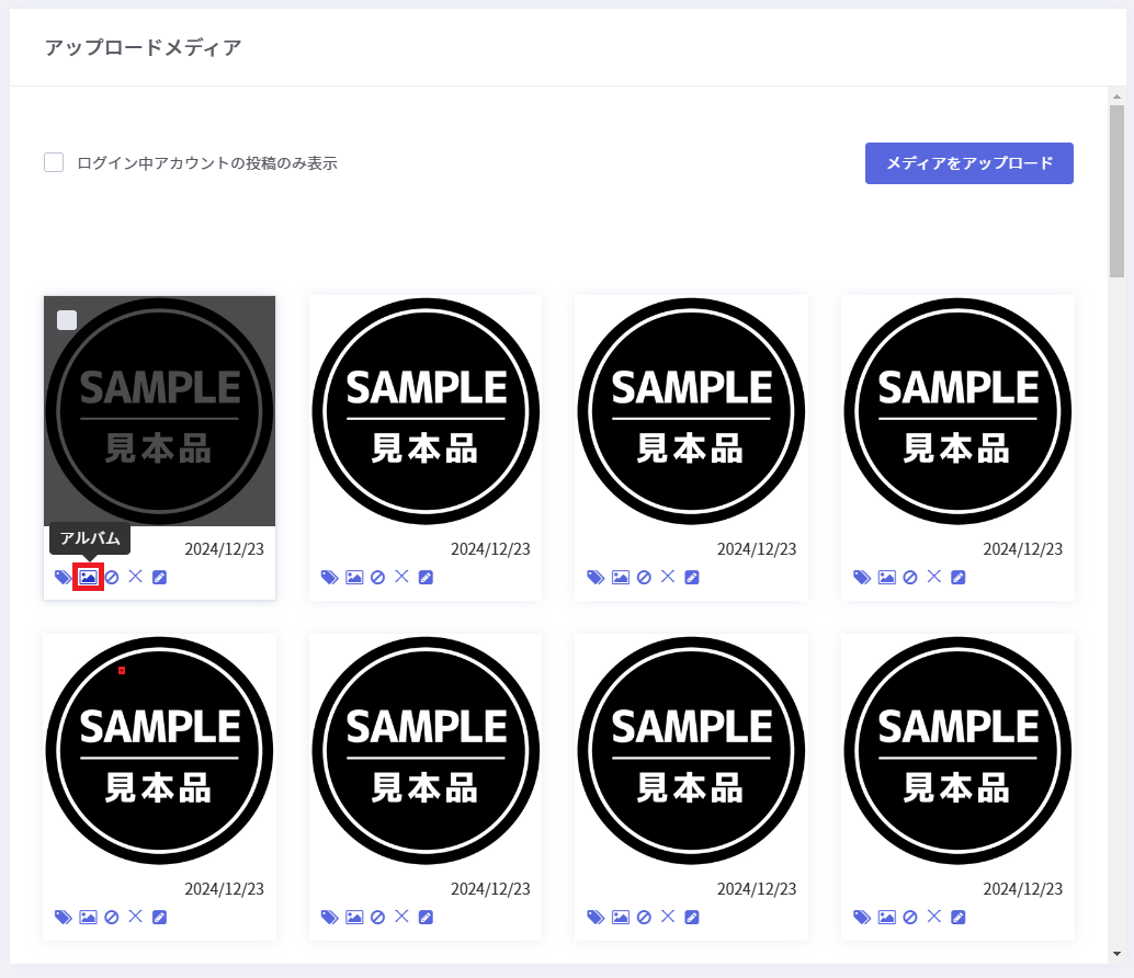 ユーザーアルバムはモデレーターアカウントごとにアイコン・ご投稿をギャラリーへ表示することが可能です。