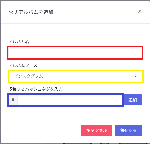 U-KOMIと連携している各SNSアカウントの投稿を公式アルバムへ自動的に追加します。