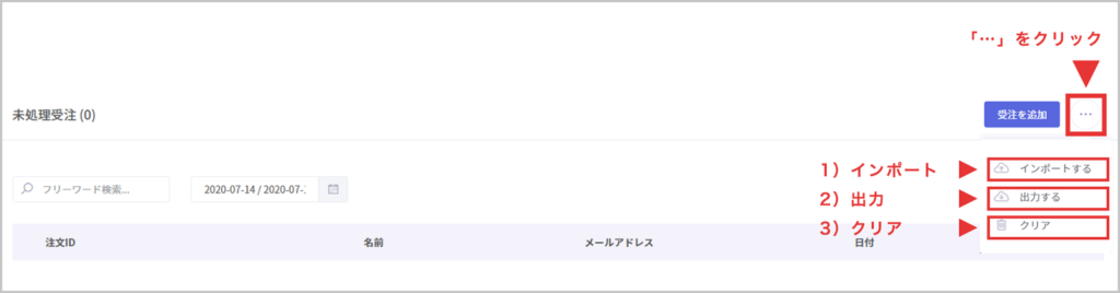 画面右上にある「・・・」を押し【クリア】で受注データを一括削除できます。