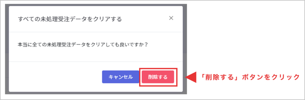 「削除する」ボタンをクリックすると受注データを削除できます。