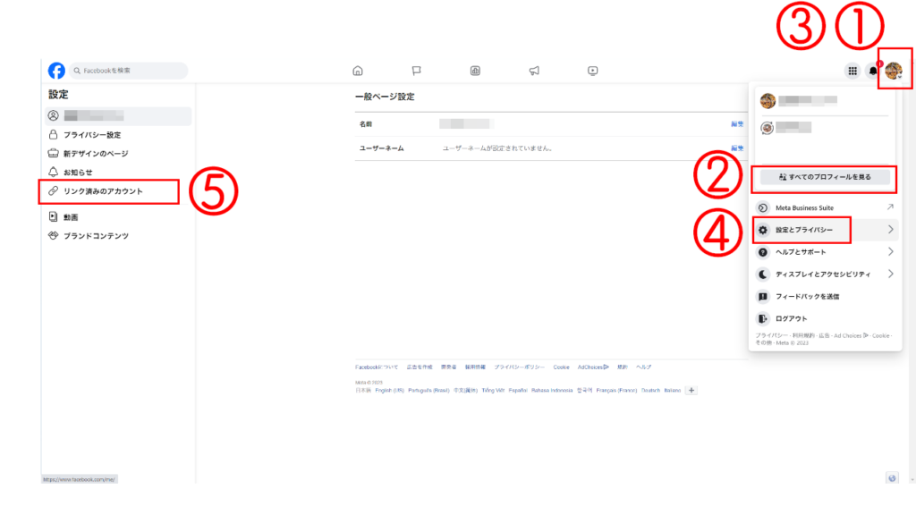 Facebookにログインし、右上のプロフィール写真をクリックします。