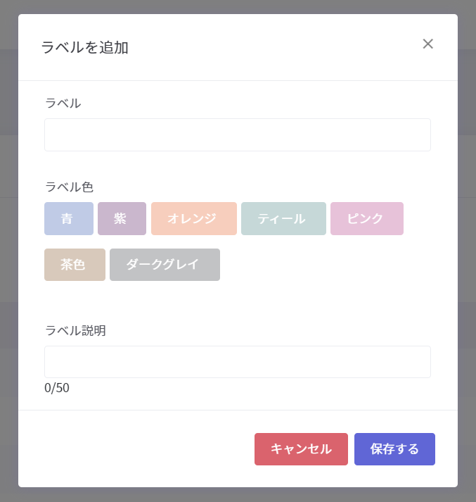 左上側にある【ラベルを追加】すると、新規ラベルの追加設定画面が表示されます。