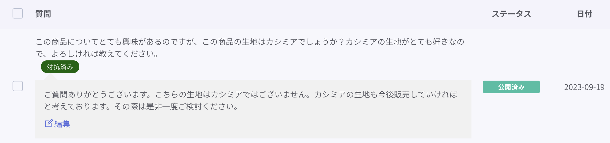 Q&Aにラベルをつけた例です