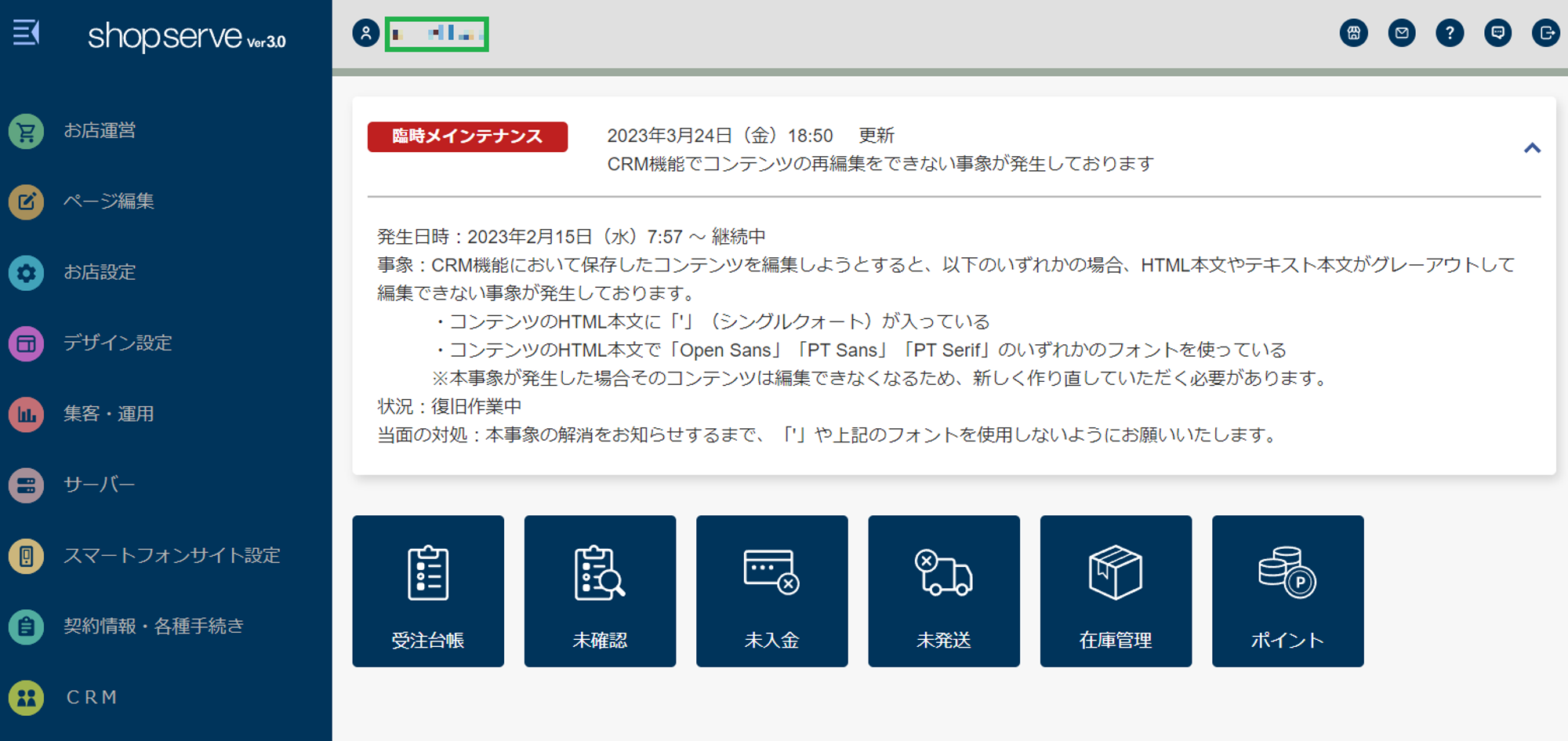 緑枠がShopServeのShop IDです。