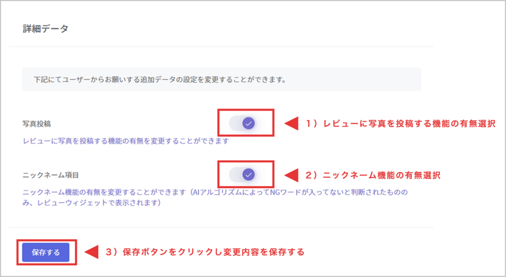 ユーザーからお願いする追加データの設定の変更をすることができます。