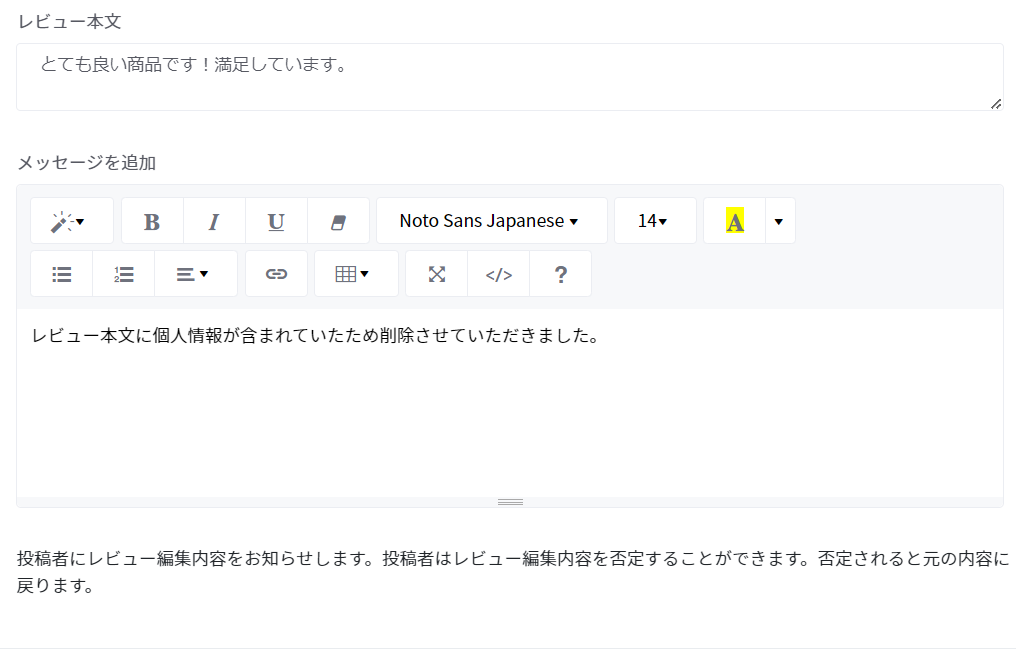 投稿者にレビューを編集した事をお知らせする内容を追加出来ます。