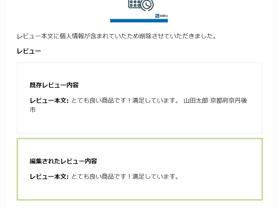 レビューの編集内容などを記載した運営側からのメッセージです。