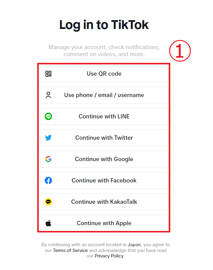 Tik Tokにログインする方法を選択