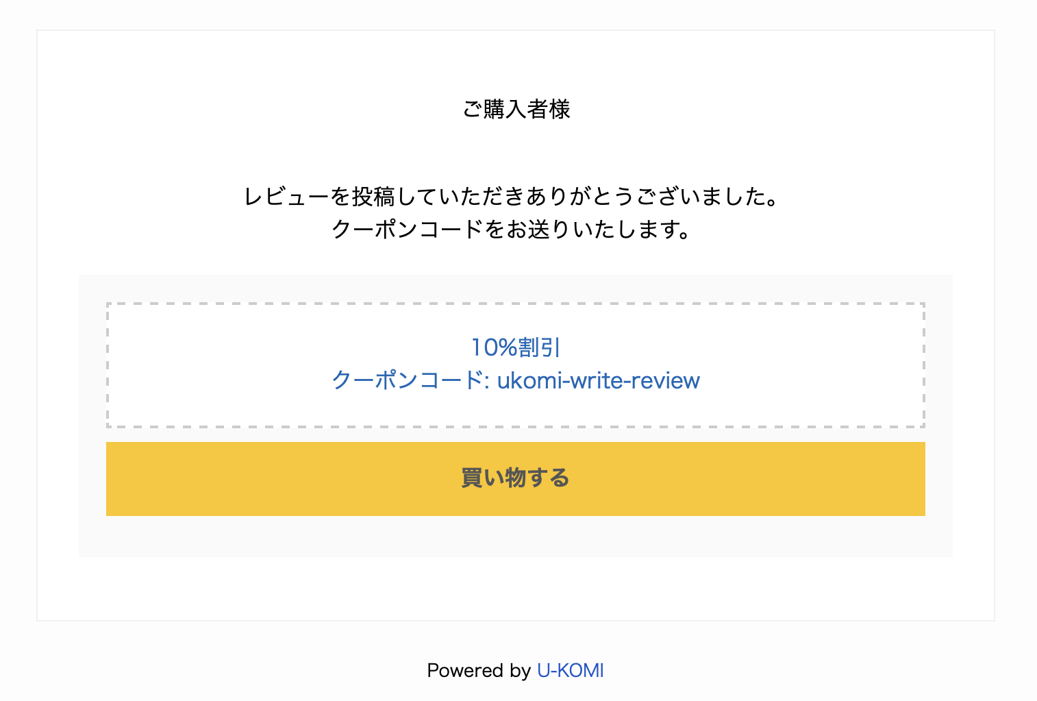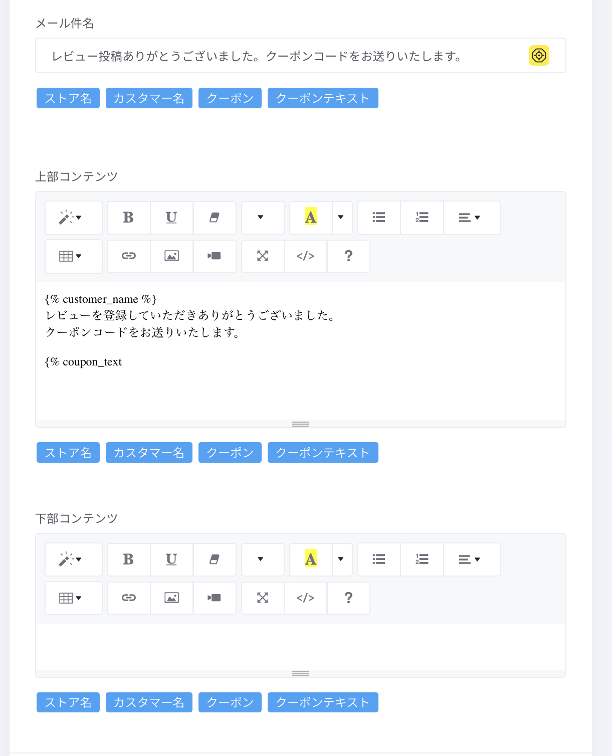 「レビュー依頼メールにクーポンテキストを送信」を有効にした場合に表示されます。