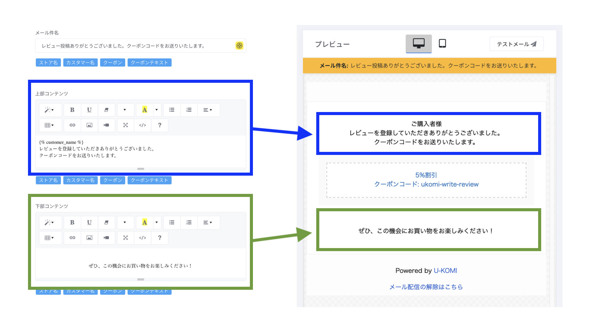 こちらはあくまで、クーポン配布メールに記載されるテキストの設定になるため、