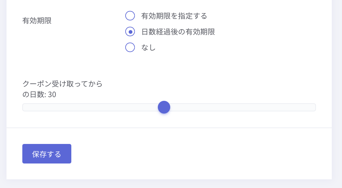 日数経過後の有効期限:クーポンを付与した日から◯日まで有効