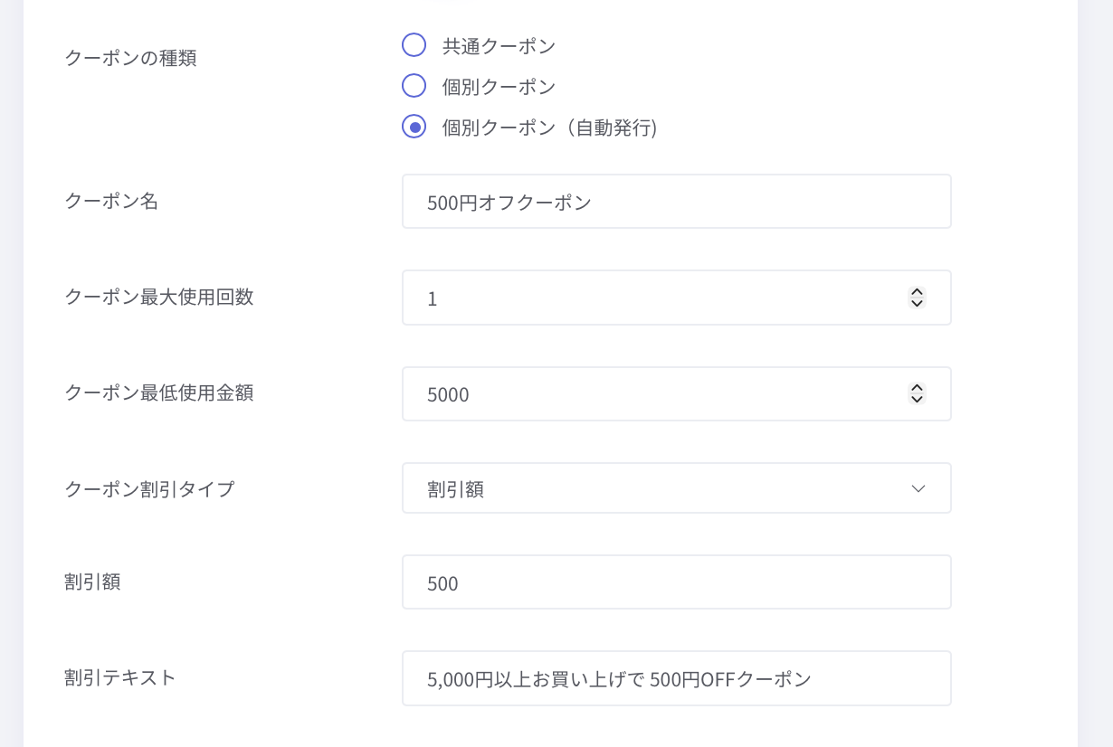 以上が、個別クーポン(自動発行)についての説明となります。