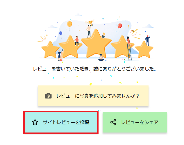 商品レビュー投稿後、サイトレビューの投稿画面の表示を有効・無効にできます。