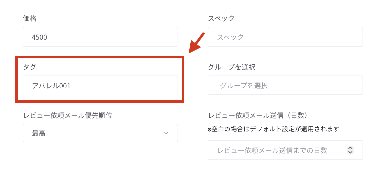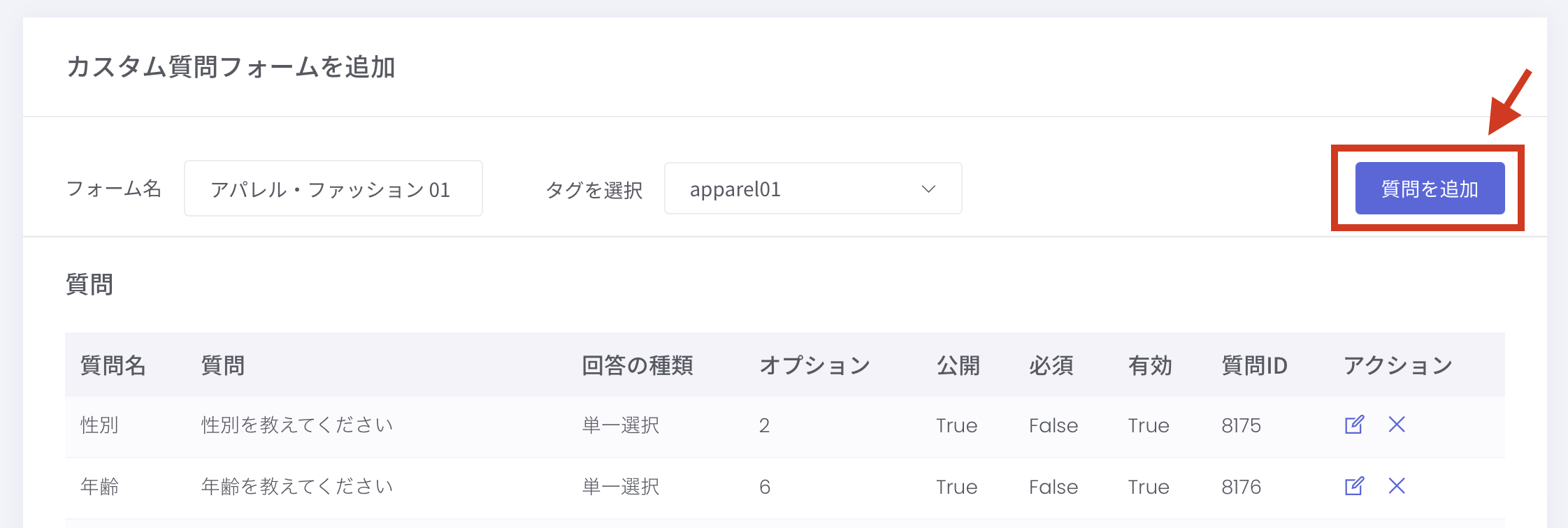商品タグを追加・設定することで、商品とカスタム質問を紐づけることができます。