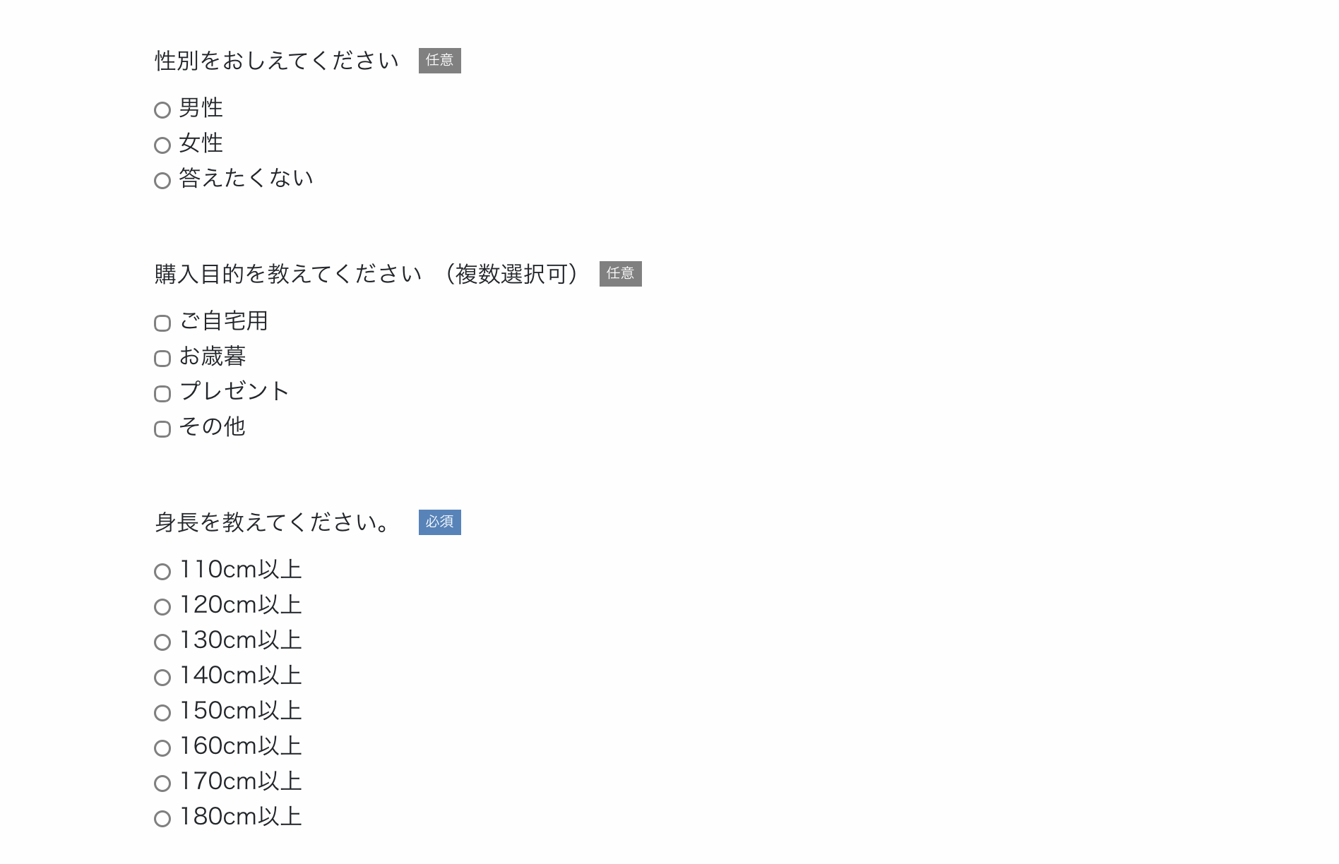質問:お客様に表示する質問文です。(年齢を選択してください など)