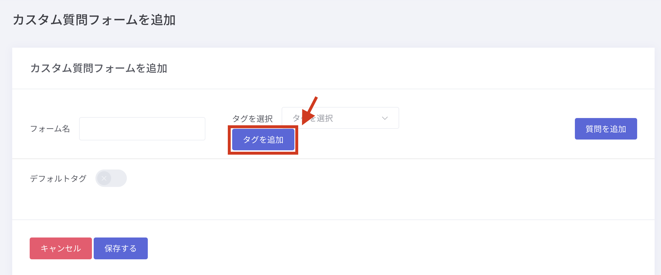 ① カスタム質問を手動で作成するときに商品タグを追加する