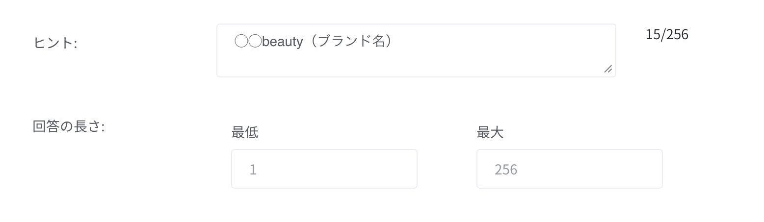 回答の長さを制限する:回答の長さ の欄に最高文字数を入力します。