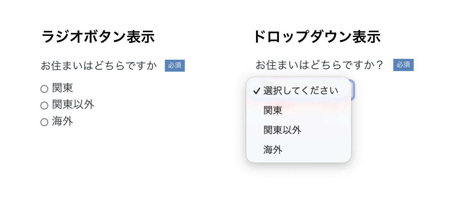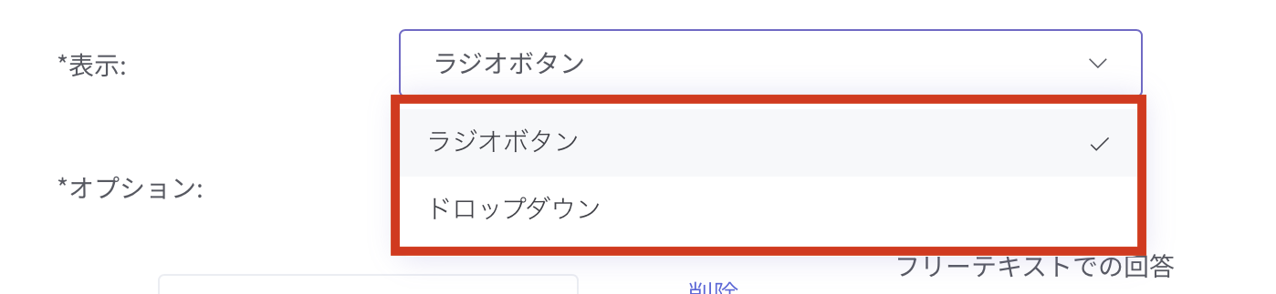 表示方法はラジオボタン表示とドロップダウン表示がございます。