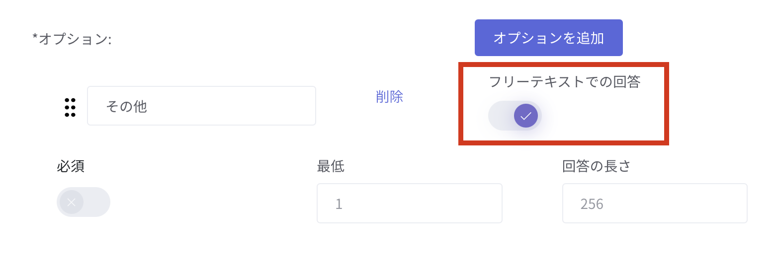 オプションはフリーテキストでの回答設定も可能です。