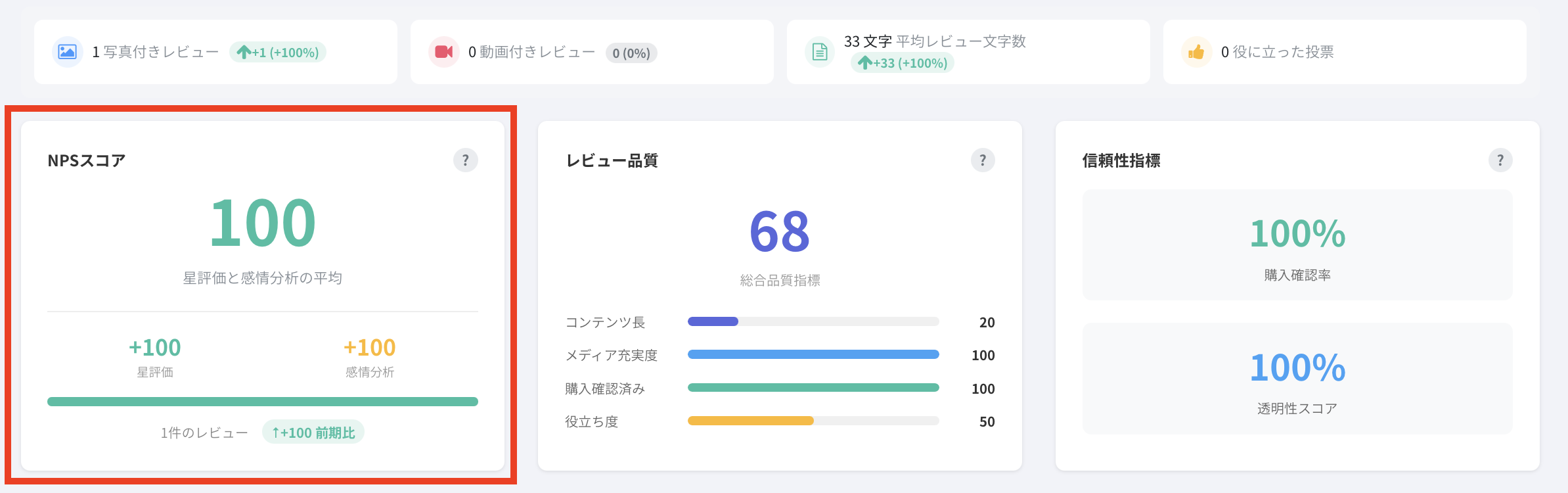 レビューの信頼性と透明性を測定する指標です。