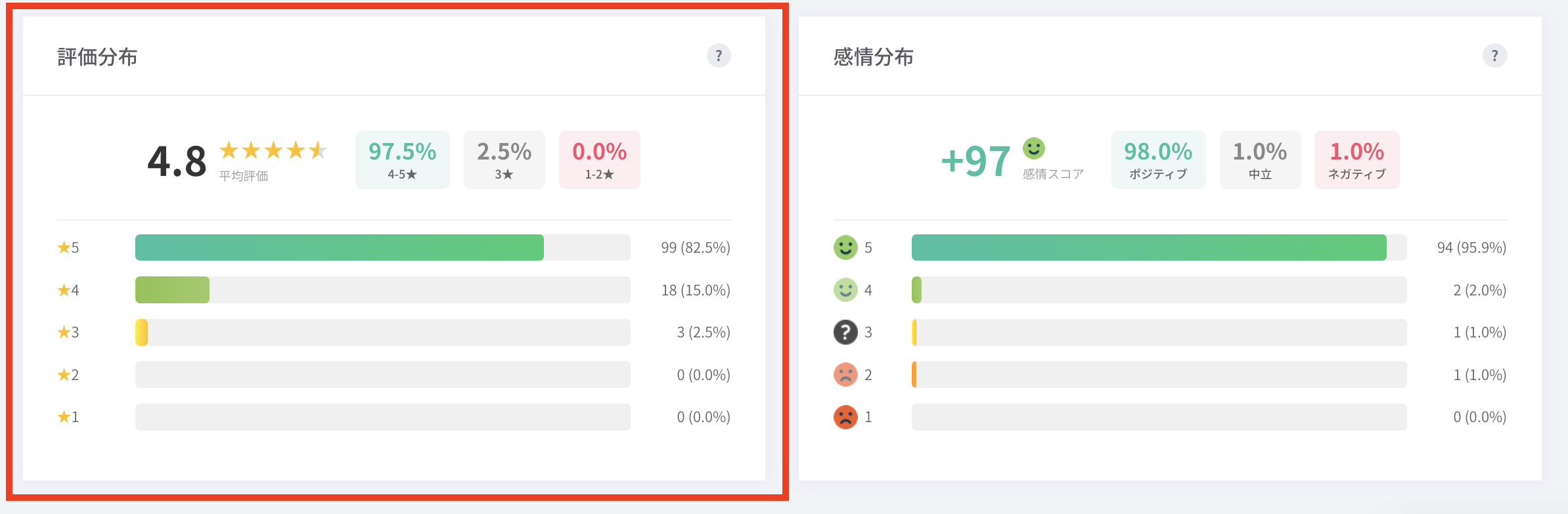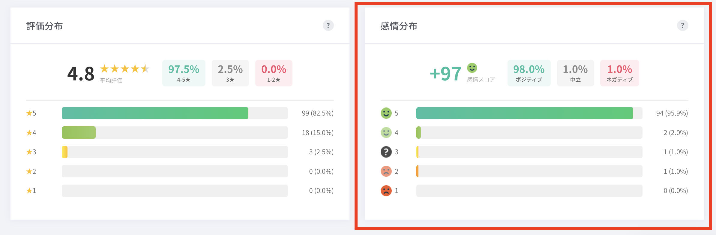 緑(推奨者):4-5つ星 / ポジティブ感情
