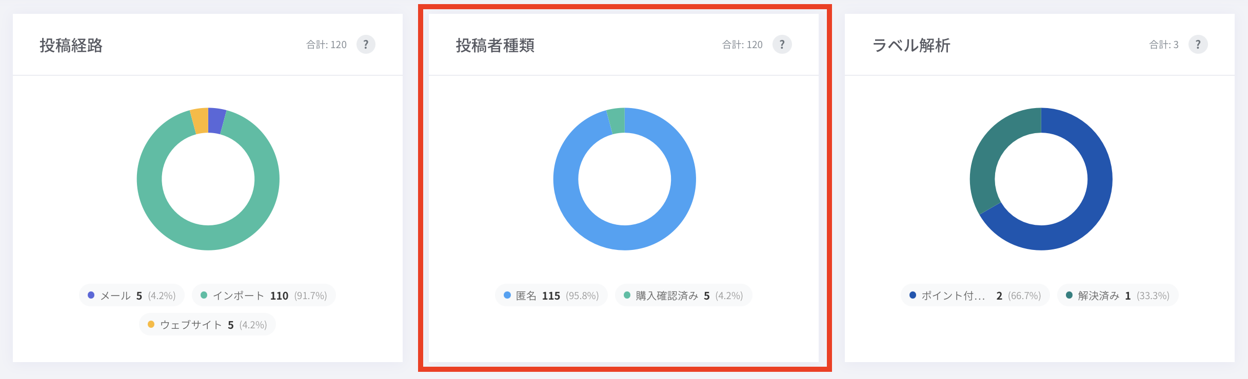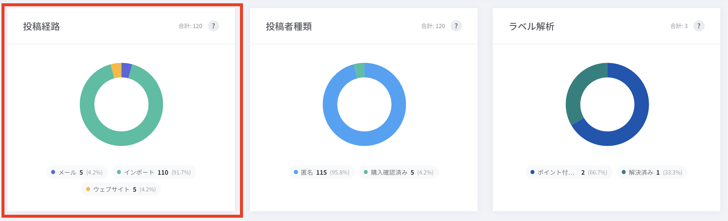 レビューの投稿経路別の割合を表示します。
