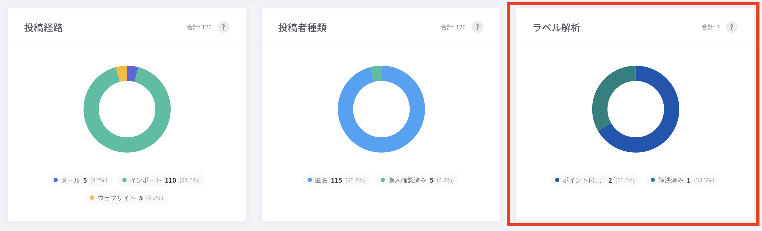 レビューに割り当てられたラベルの割合を表示します。