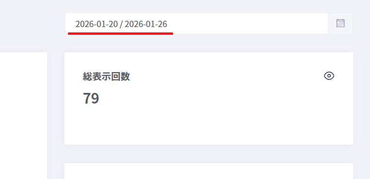 画面右上の日付選択から、解析対象の期間を指定できます。