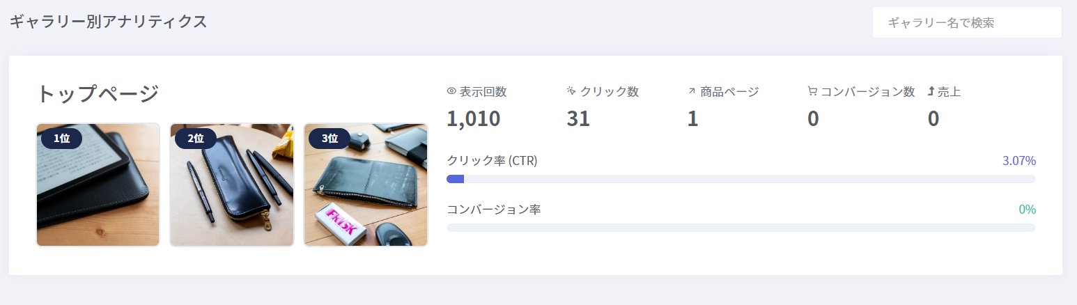 作成したギャラリーごとの詳細なパフォーマンスデータが表示されます。